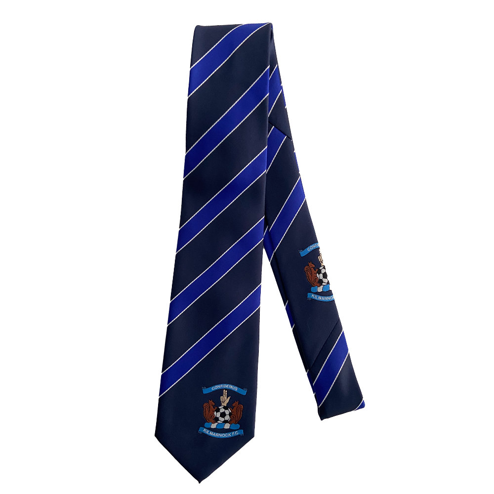 The Kilmarnock FC 2-Stripe Tie with Royal, Oxford and White Beading.