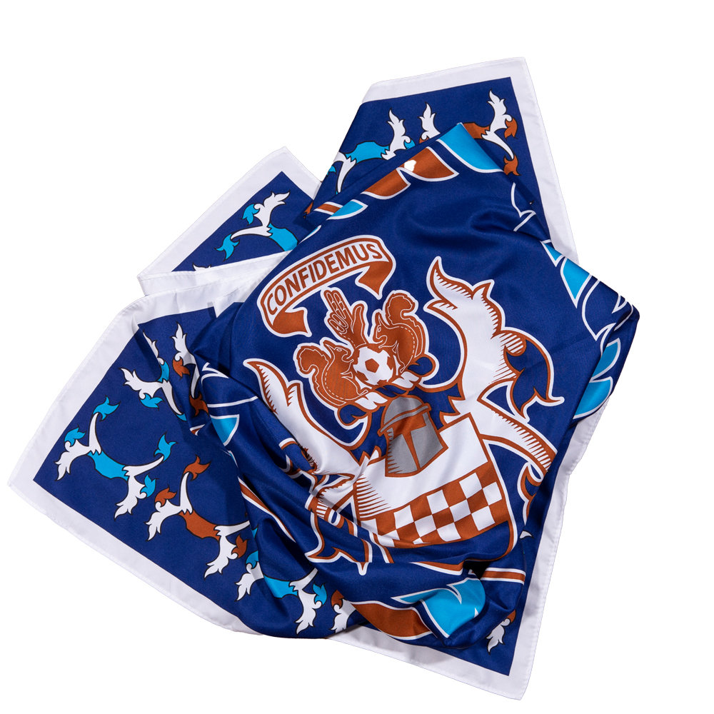 Limited Edition, Custom Designed Ladies Neck Scarf measuring 150mm x 150mm. The perfect companion for any classy, Killie fan.
